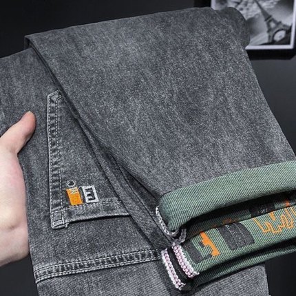 烟灰色高档牛仔裤男夏季新款宽松直筒百搭潮流修身小脚休闲九分裤