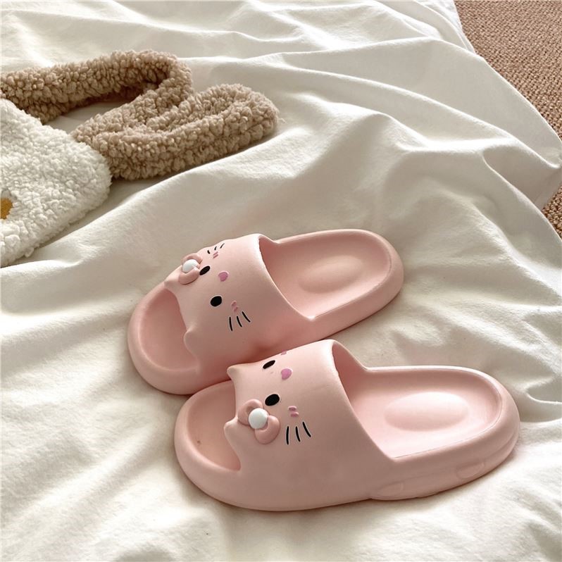 软萌小猫~!少女心卡通ins居家拖鞋女夏季厚底浴室防滑一字凉拖鞋
