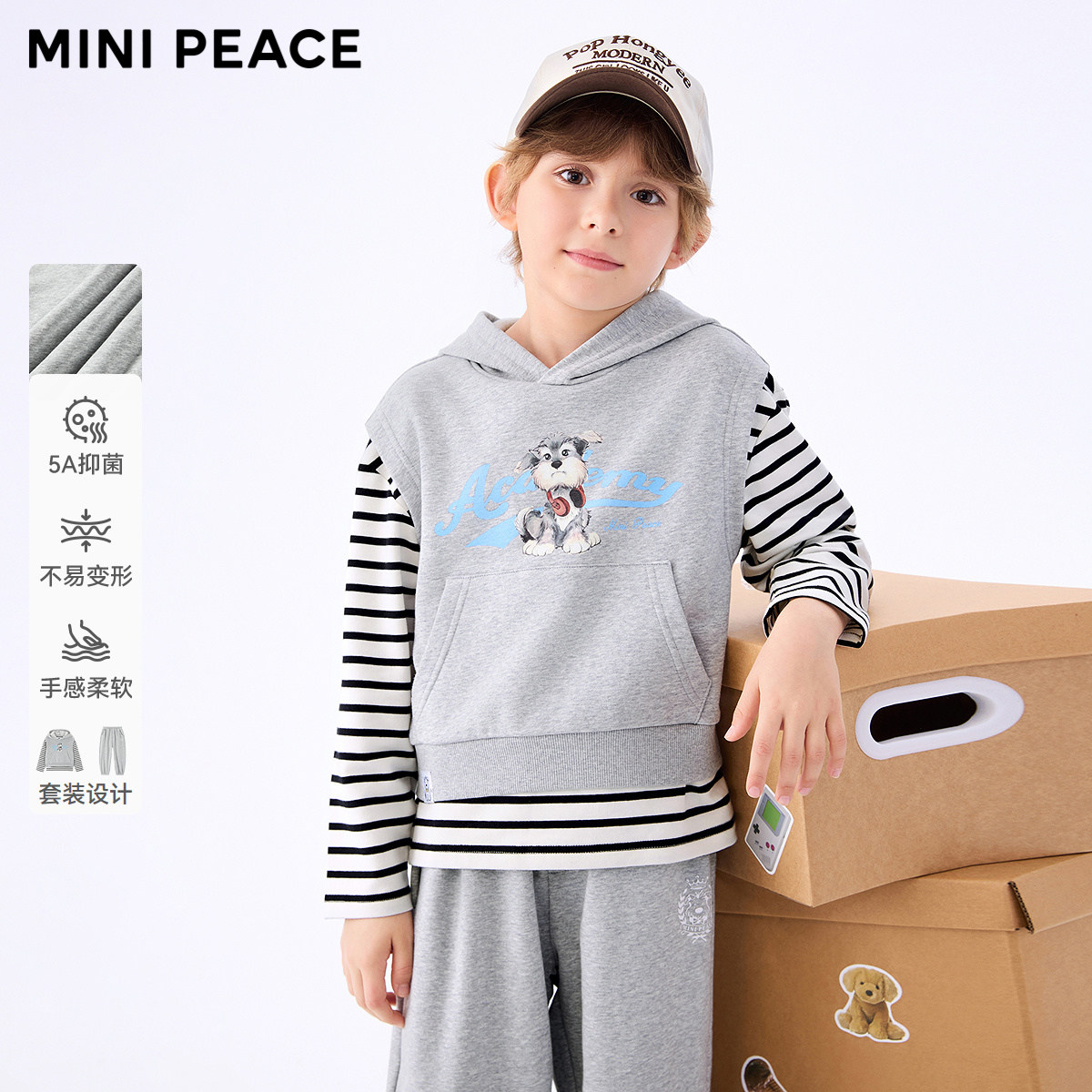 MINIPEACE太平鸟童装男童套装秋季假两件连帽卫衣卫裤儿童两件套