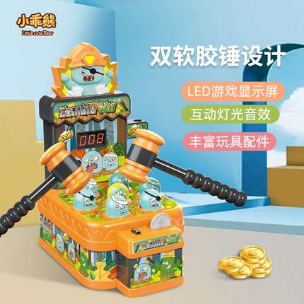 儿童电动声光打地鼠玩具3-6岁益智僵尸大战欢乐锤子投币游戏机