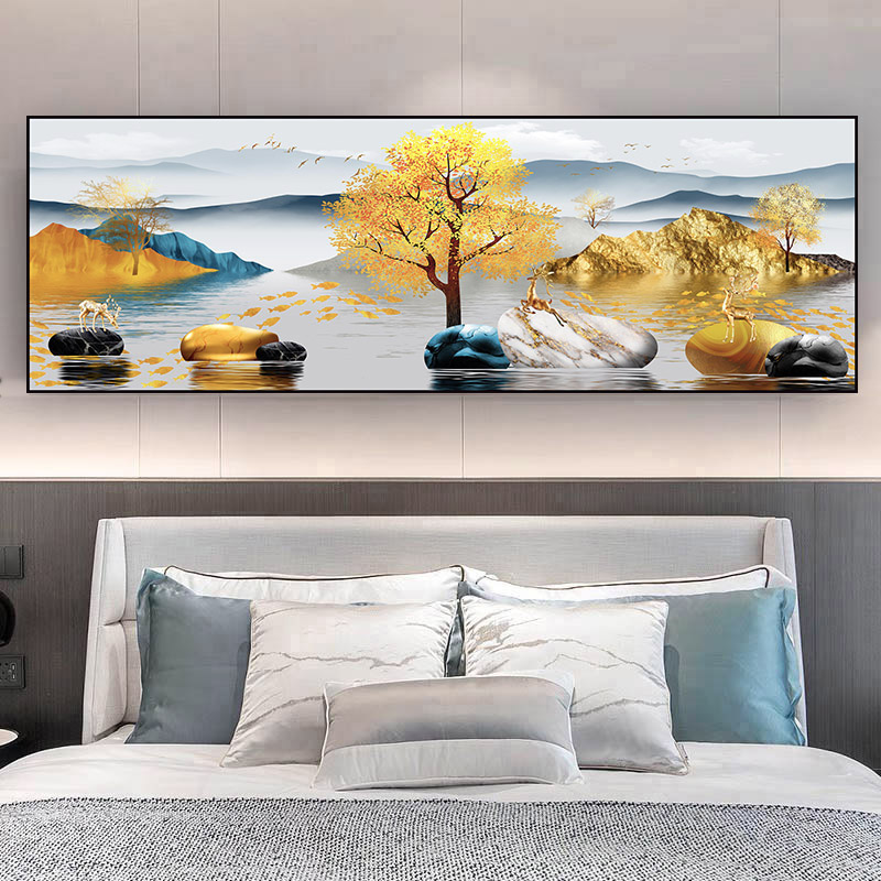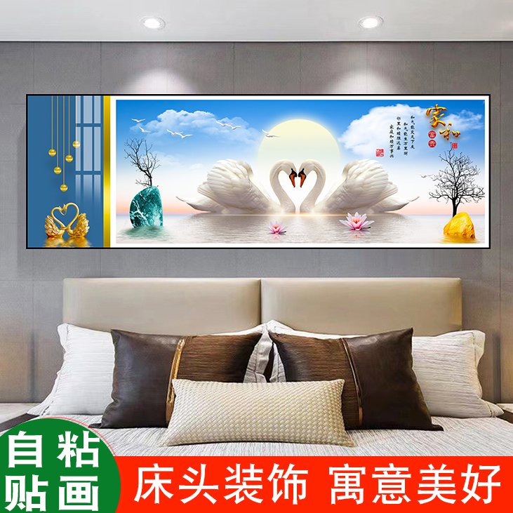 卧室床头自粘装饰画墙贴客厅房间酒店宾馆民宿背景墙壁纸山水贴画