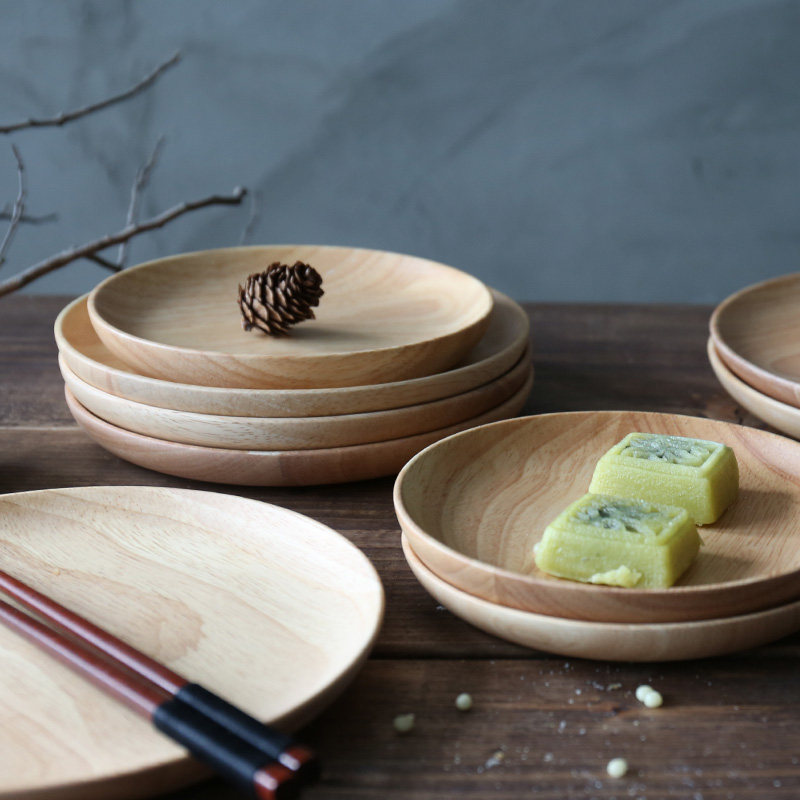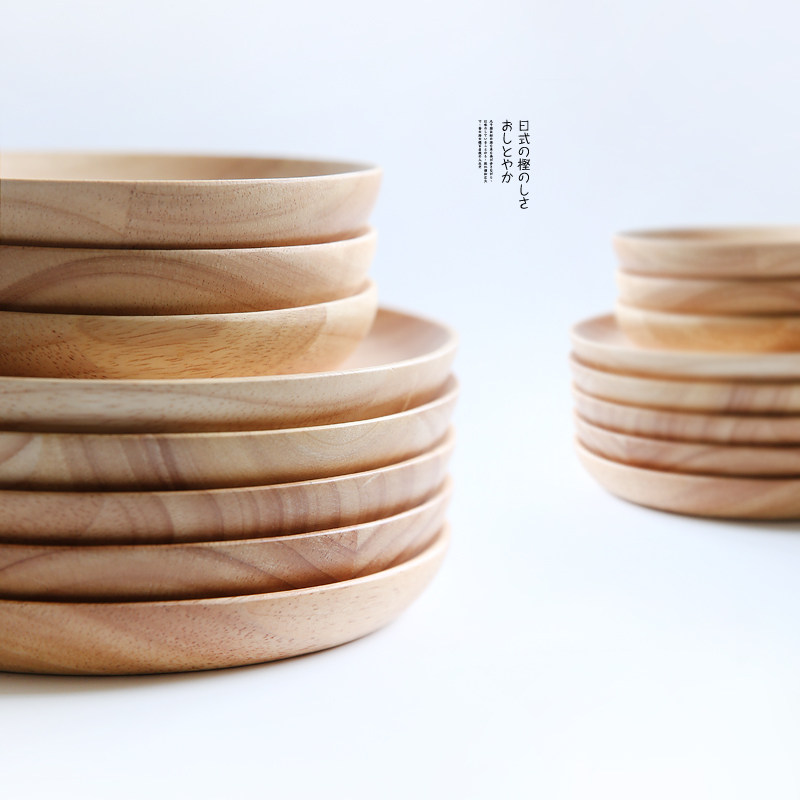 简约圆形实木盘 大中小号点心水果木碟子冷菜盘果盘木餐具