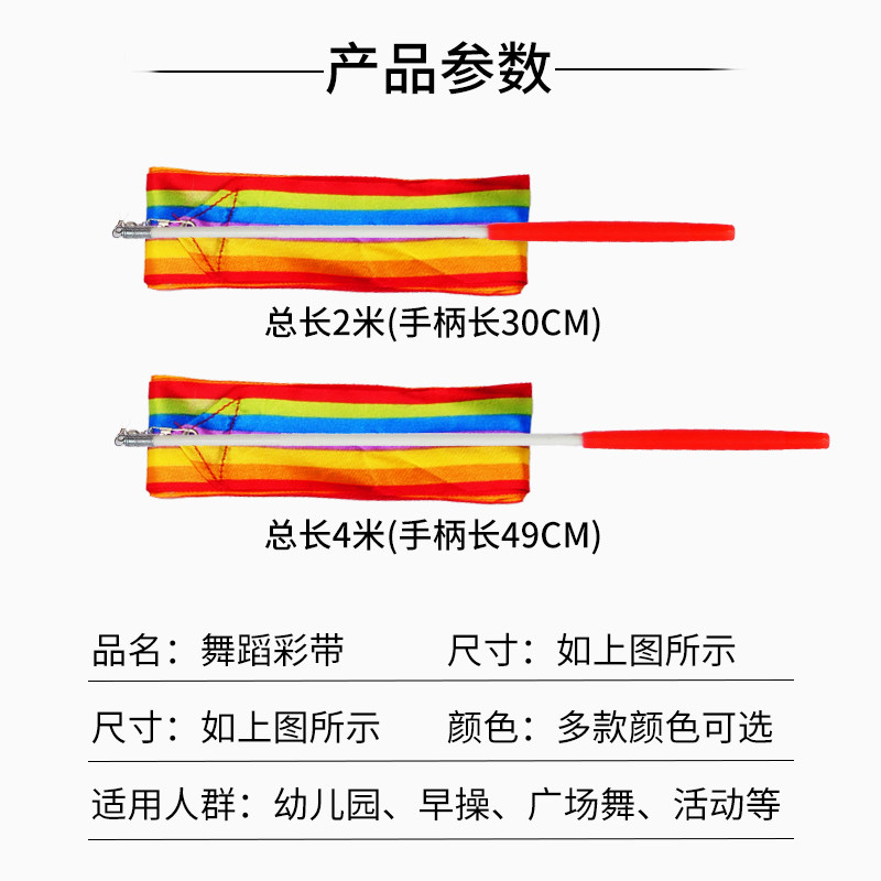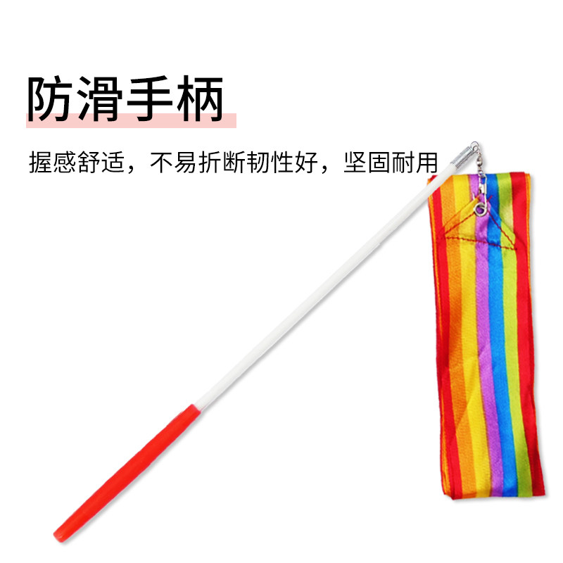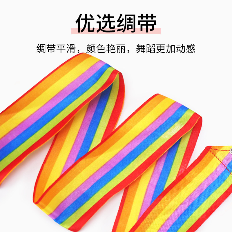 彩带舞彩带棒跳舞飘带七彩丝绸带儿童手持体操广场舞舞蹈表演道具