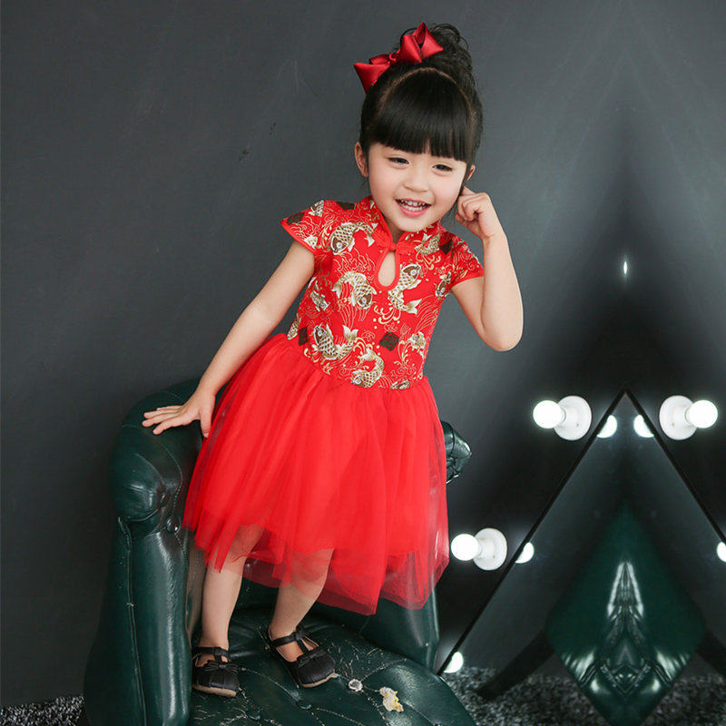 女童纱裙夏中国风旗袍裙拜年喜庆