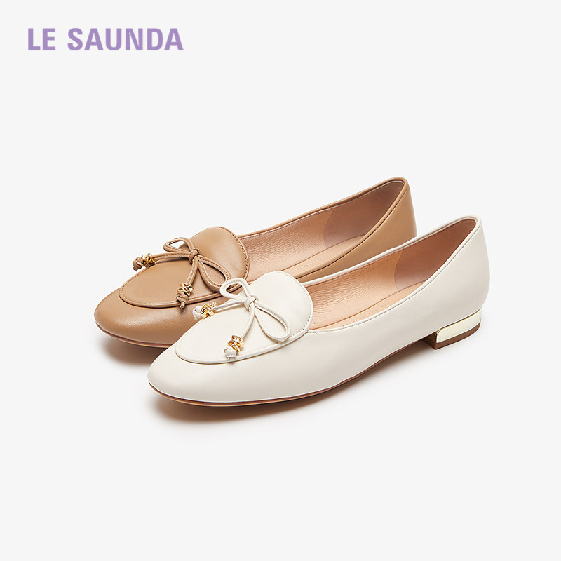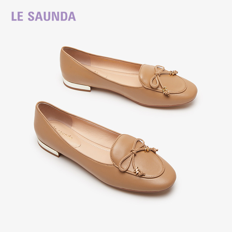 莱尔斯丹平跟真皮蝴蝶结乐福鞋女