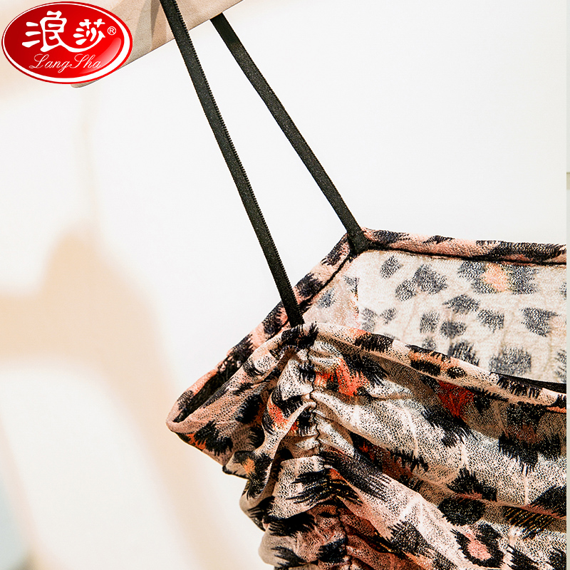 浪莎正品豹纹吊带女修身美背性感2025夏季新款洋气女装上衣背心