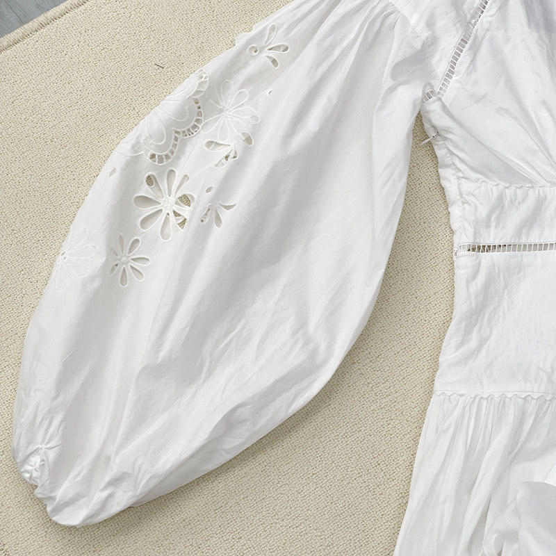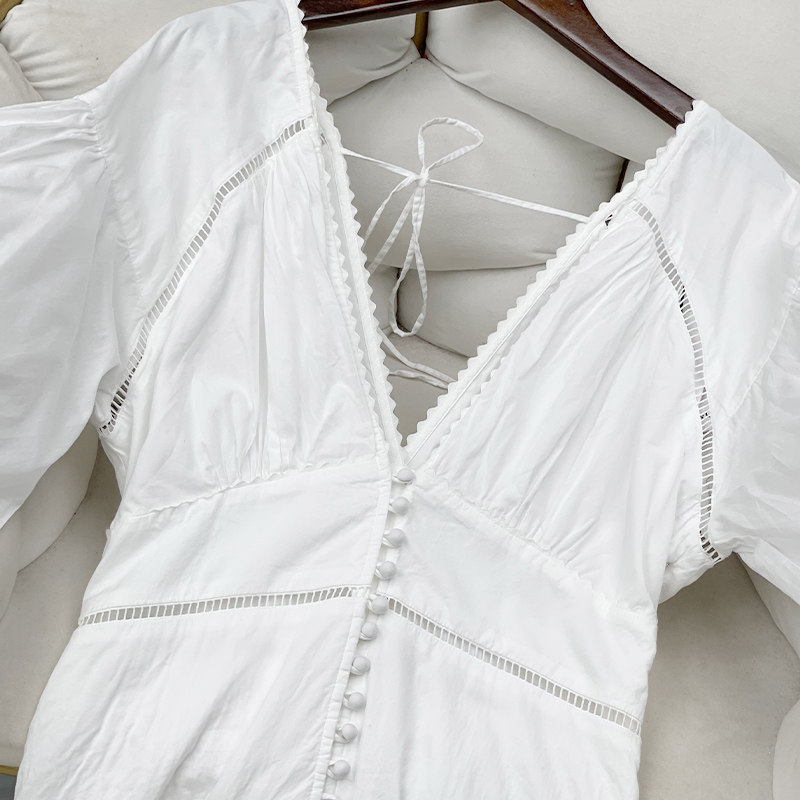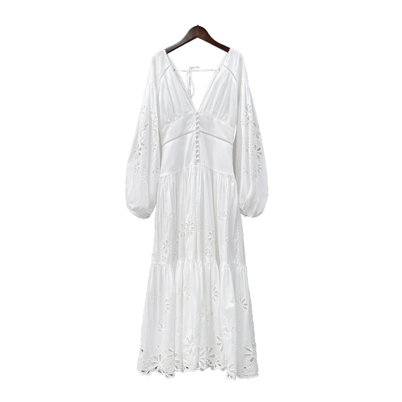 田曦薇明星同款白色蕾丝镂空海边度假风连衣裙温柔甜美仙女长裙女