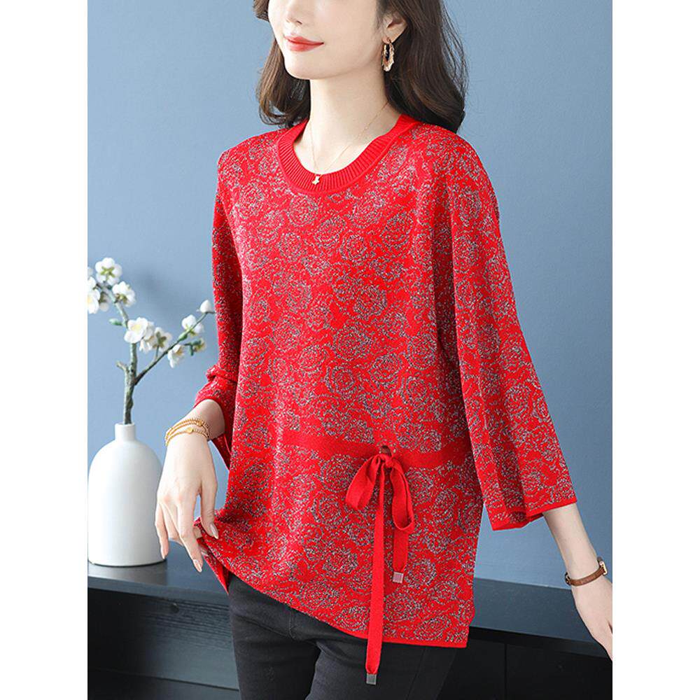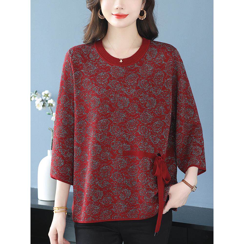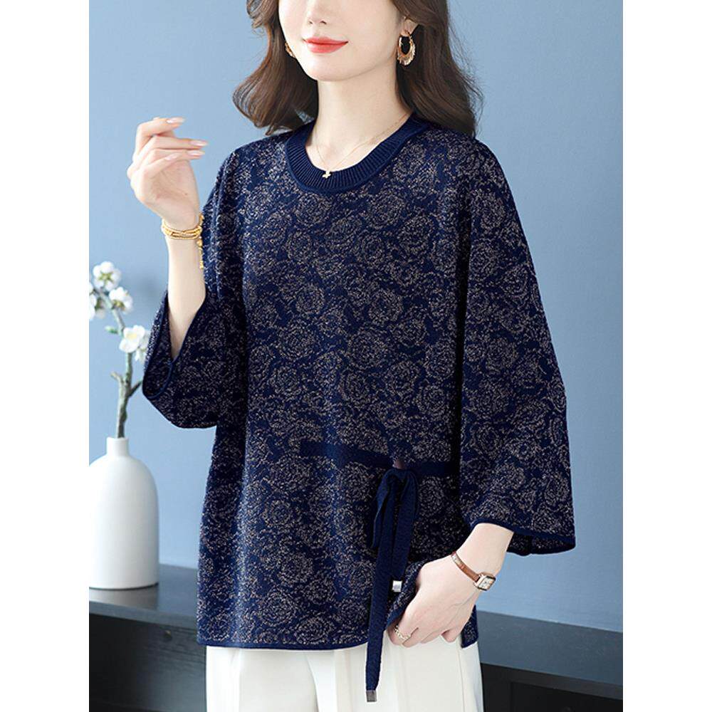 妈妈装桑蚕丝七分袖T恤女大码上衣时尚中老年宽松这点薄款打底衫
