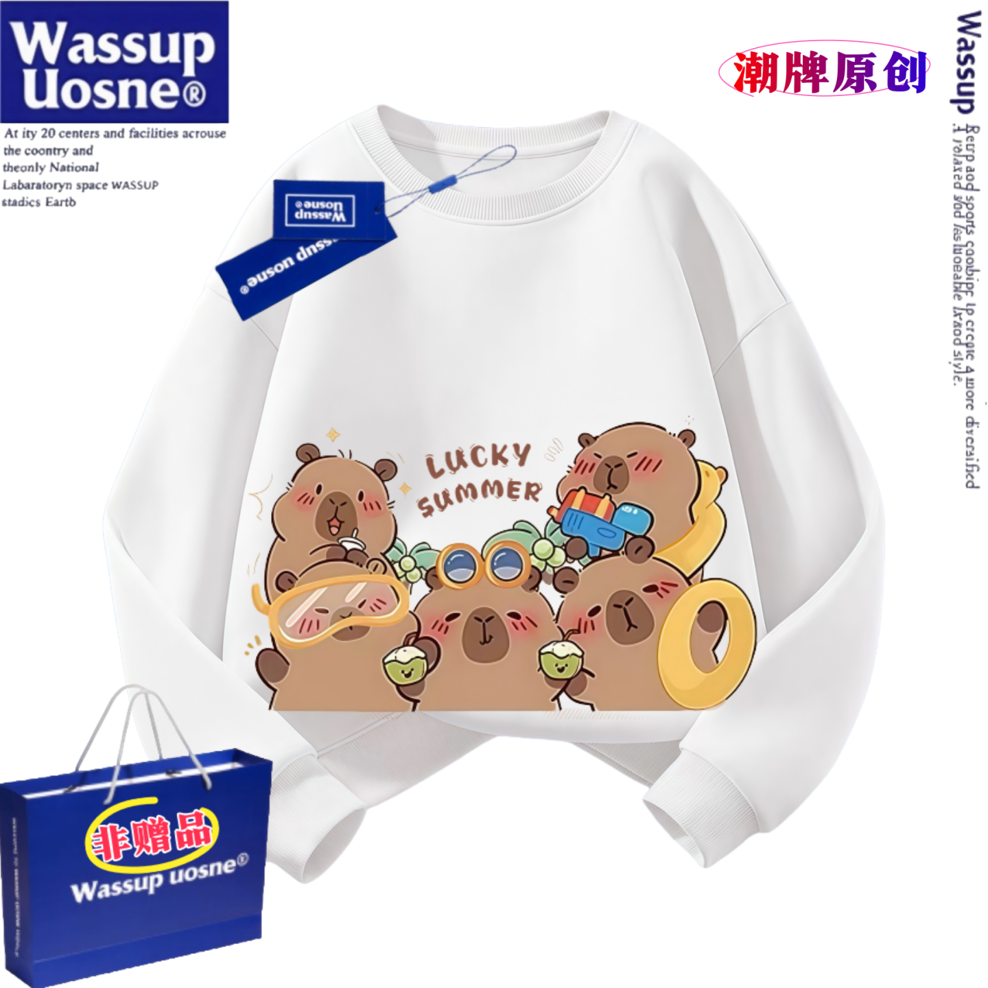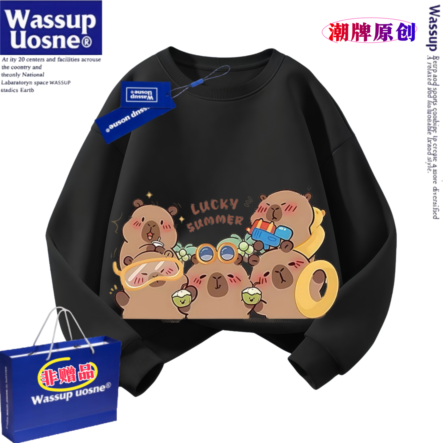 WASSUP联名卡皮巴拉新款纯棉卫衣