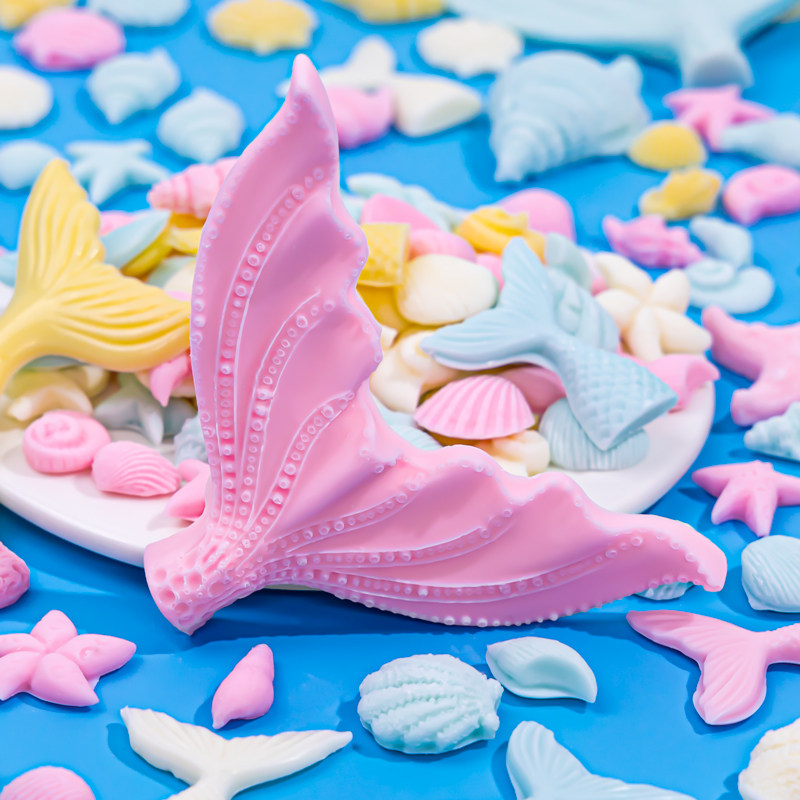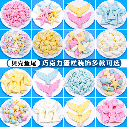 巧克力贝壳海洋蛋糕冰淇淋鱼尾装饰品摆件美人鱼尾巴海螺烘焙插件