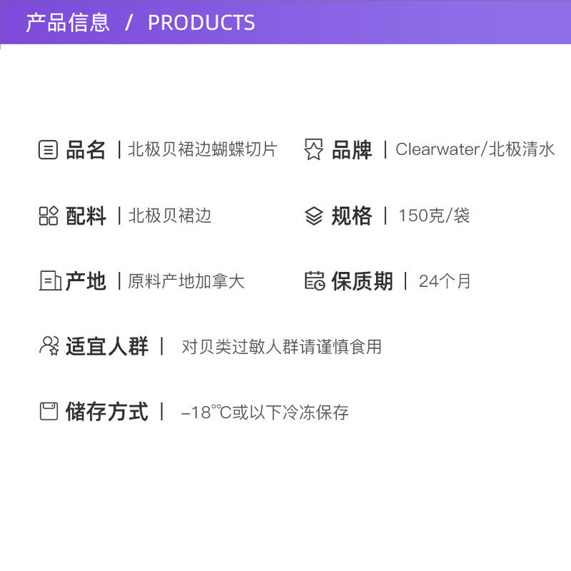 【自营】Clearwater加拿大北极贝裙边兰花蚌刺身750g组合家庭装