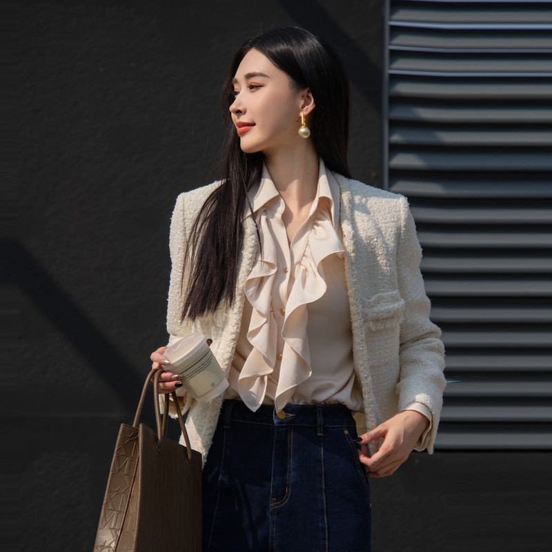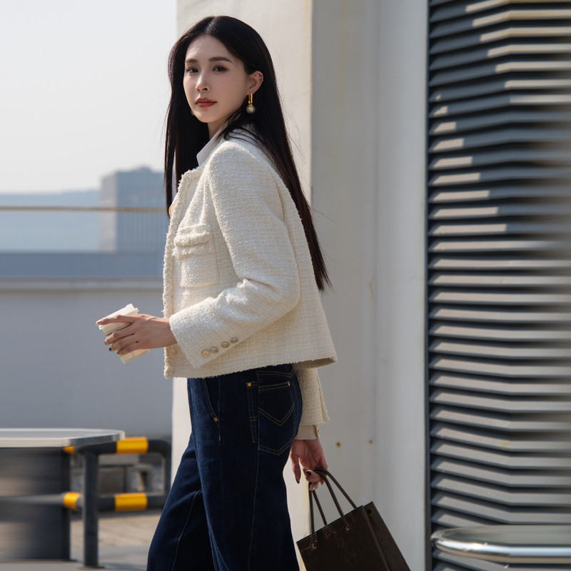 XG雪歌简约精致小香风短外套女2025春装新款圆领上衣XK107011A291