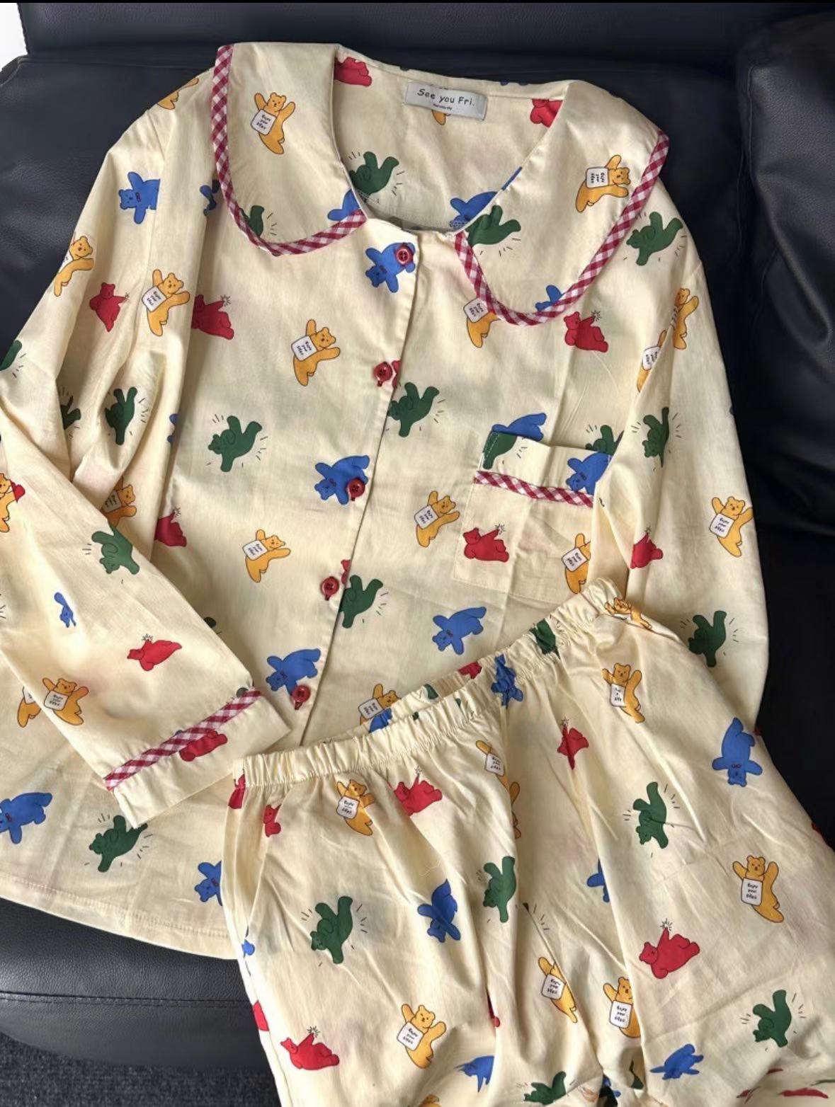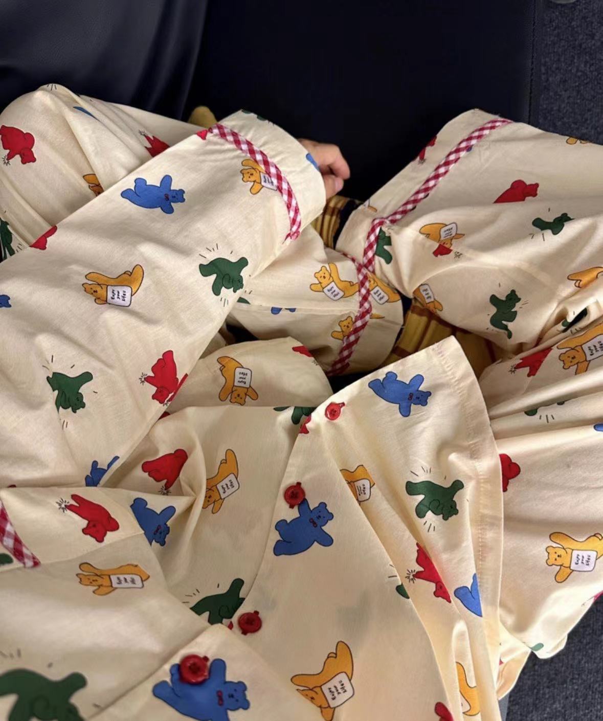 侘町秋冬可爱卡通纯棉睡衣条纹小熊家居服休闲可外穿套装居家男女