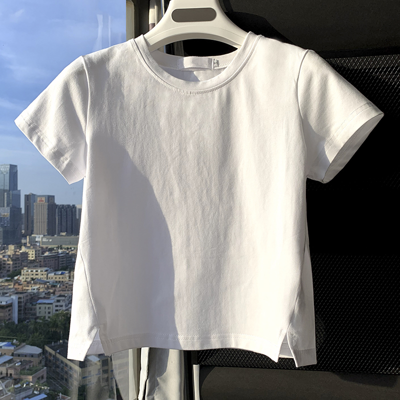 白色纯棉短袖t恤女夏季薄款2024新款宽松小个子短款正肩半袖上衣