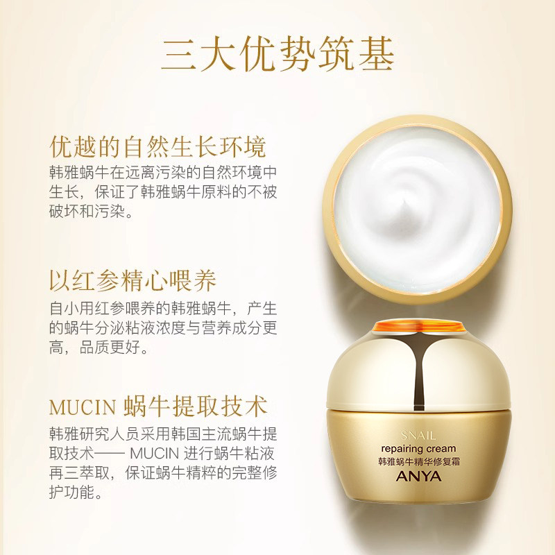 韩雅蜗牛精华修复霜紧致滋养补水保湿修护面霜护肤品抗皱紧致正品