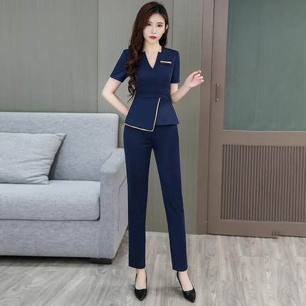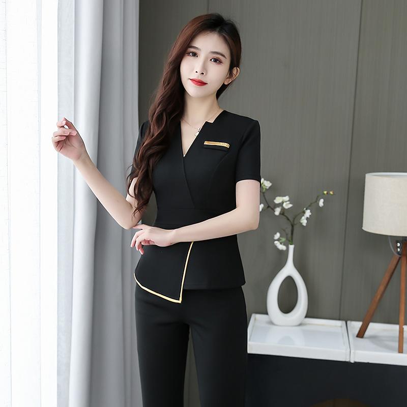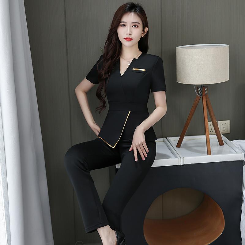 美容院工作服美容师遮肚性感短袖套装包裙按摩技师服足浴店工装女