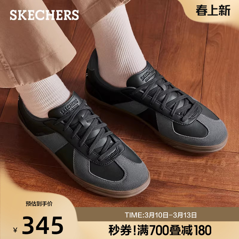 斯凯奇春季男复古绑带德训鞋撞色百搭板鞋舒适时尚休闲运动鞋