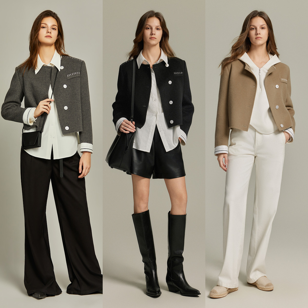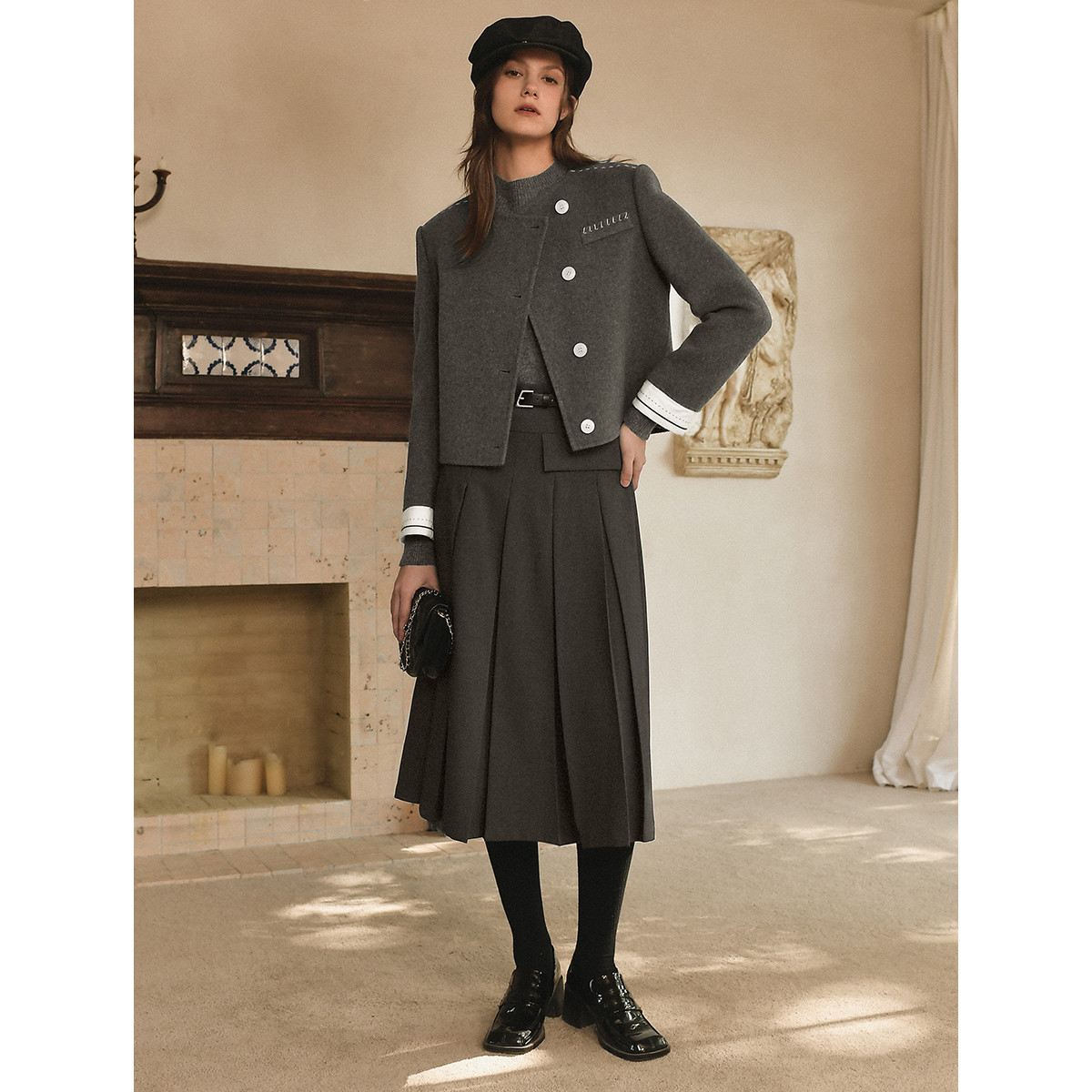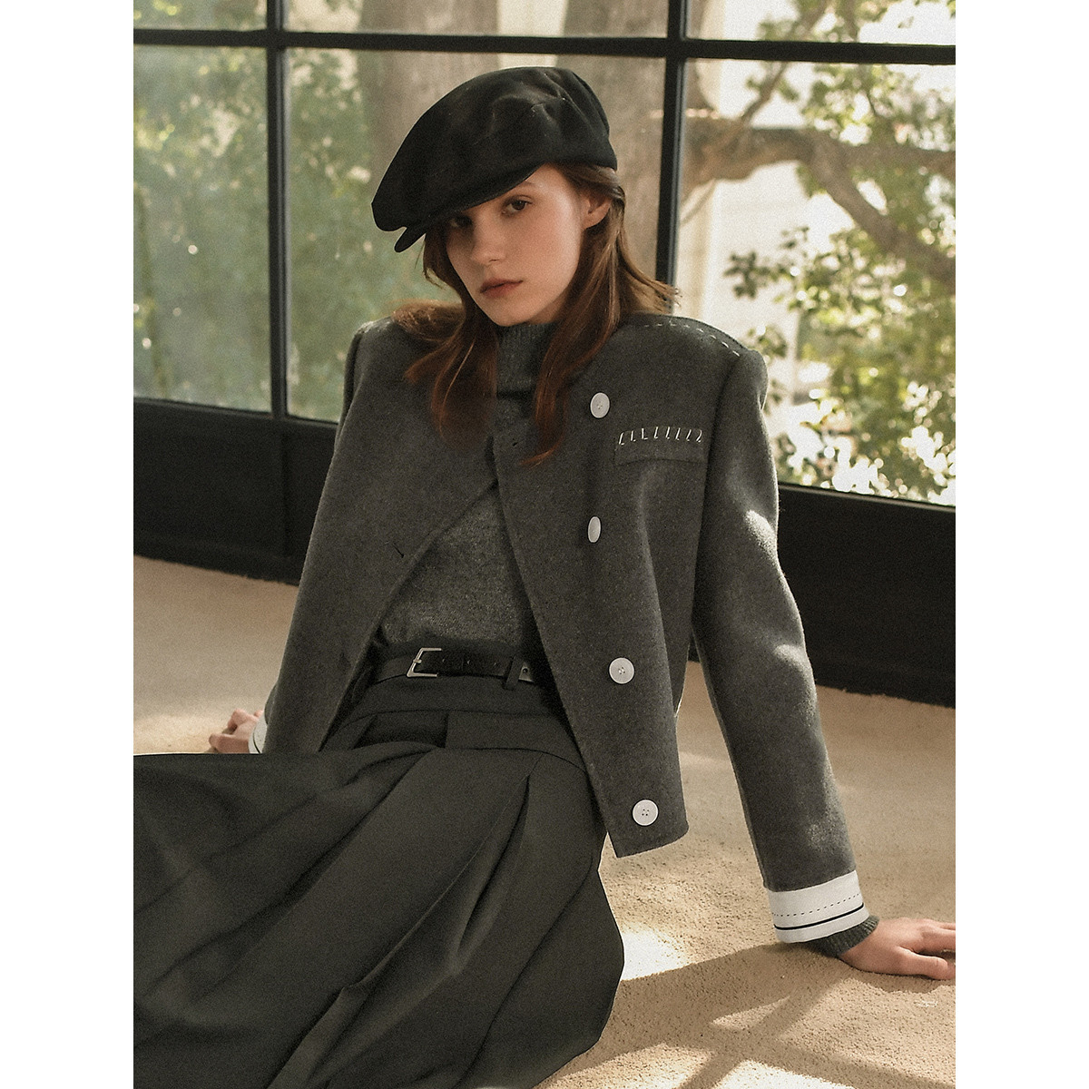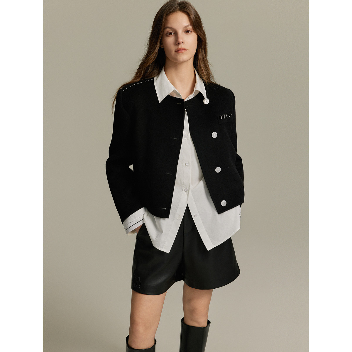 【100%绵羊毛】ELLE格雷系短款毛呢外套女2025冬装新款双面呢大衣