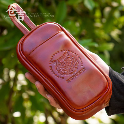 【虎啸擎雲】手拿包!仓吉手工牛皮手机包核桃手串文玩收纳包钱包