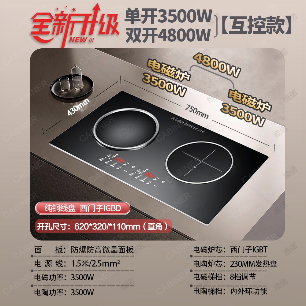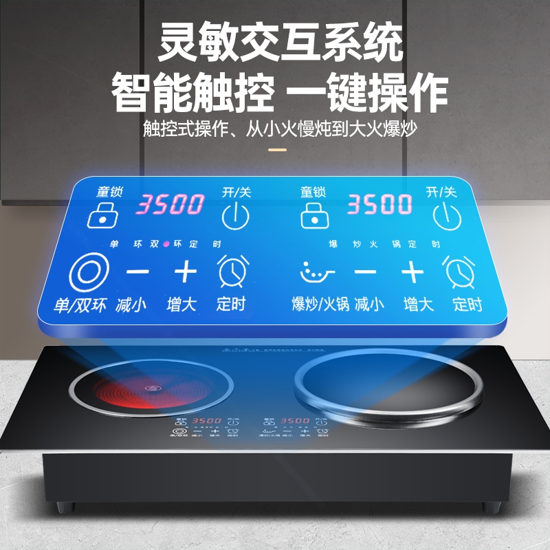 台小开孔62X32大功率7000W电磁炉双灶嵌入式家用电陶炉双头电灶