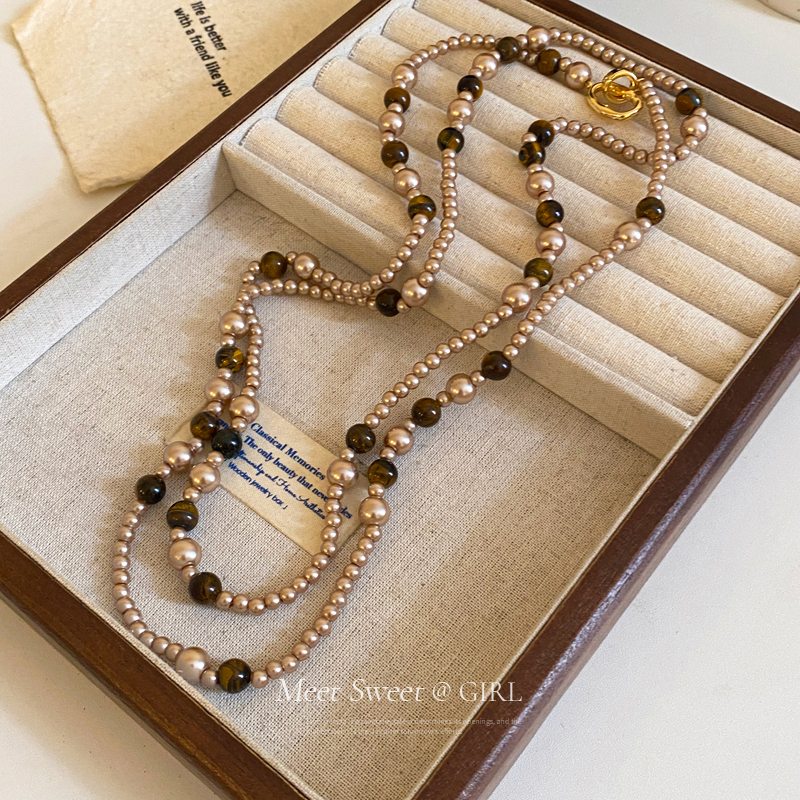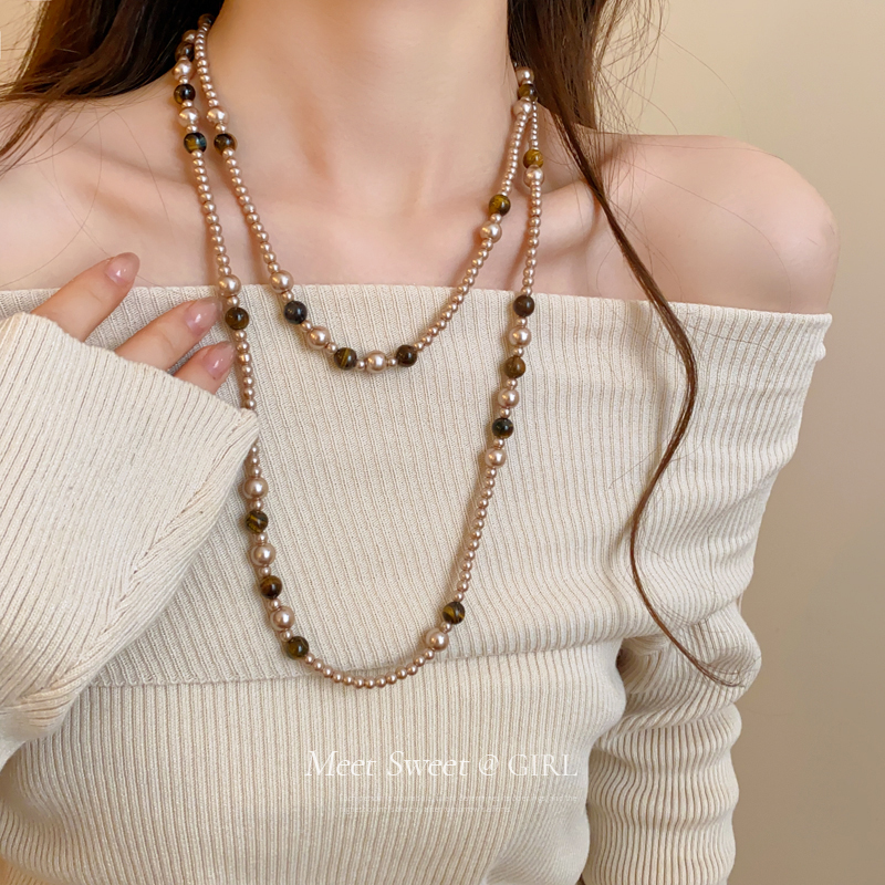 叠戴长款虎眼石珍珠款毛衣链轻奢高级感大气高档时尚百搭配饰女