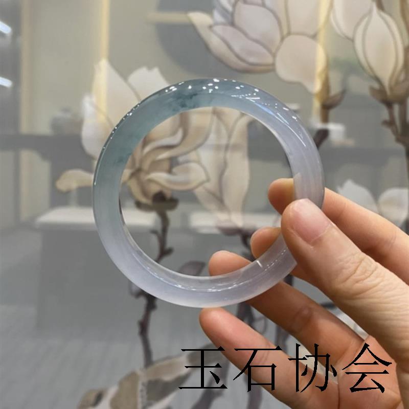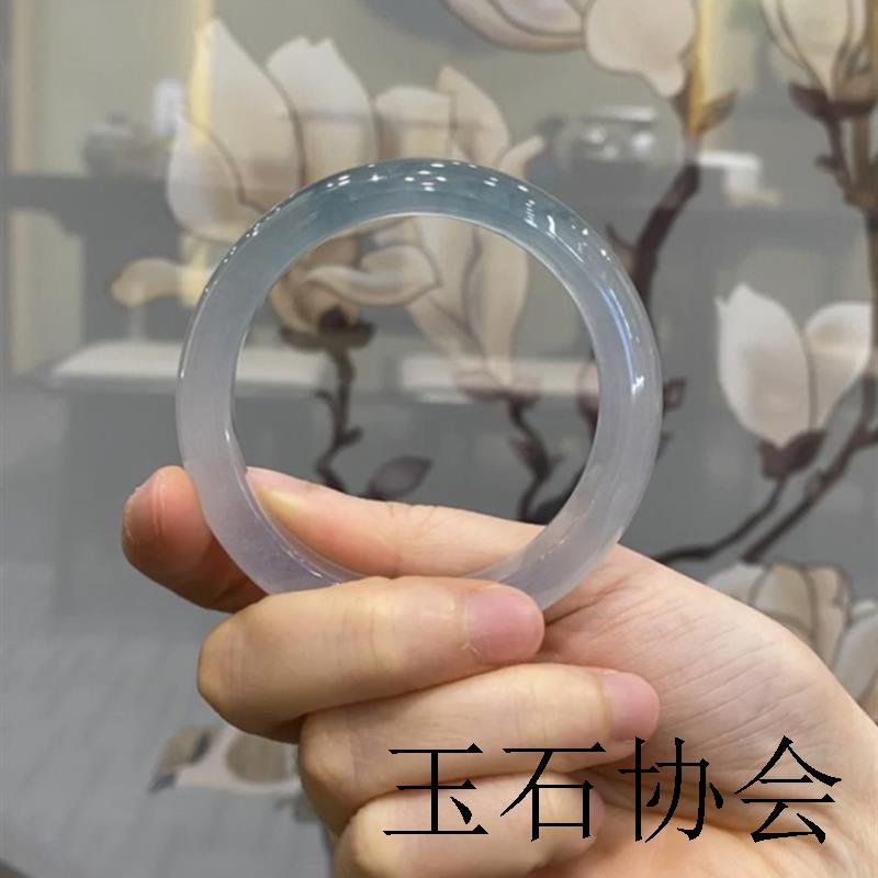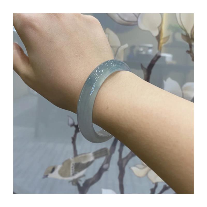 危地马拉飘花翡翠色手镯女晴水阳绿贵妃镯危料冰种蓝水沫玉石镯子