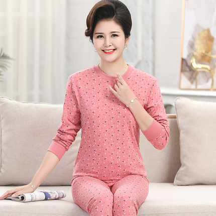 中老年人秋冬纯棉薄款保暖内衣全棉秋衣秋裤女套装老人妈妈棉毛衫
