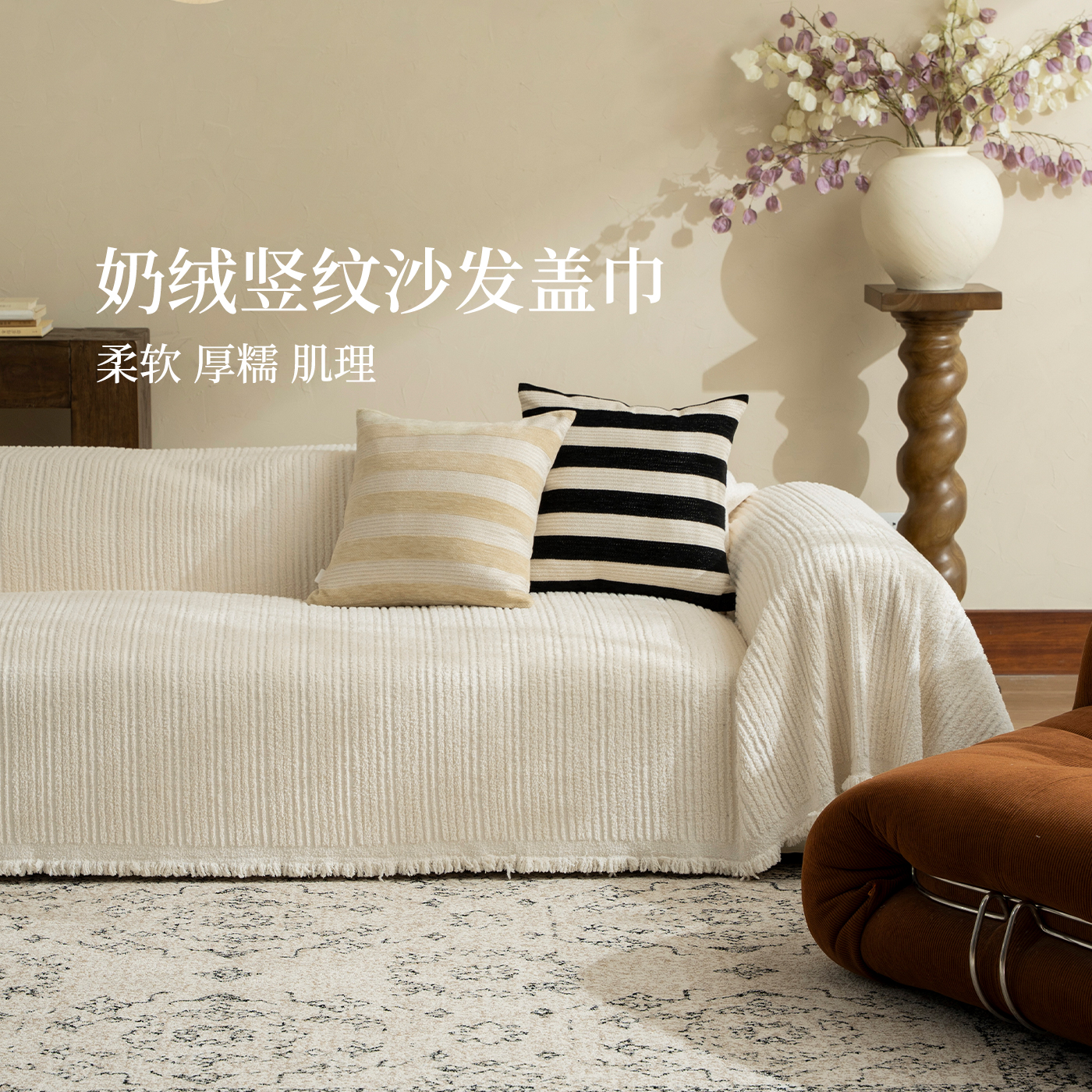 毛绒沙发盖布冬季加厚盖巾毯子防滑一整张全盖法式奶油ins风套罩