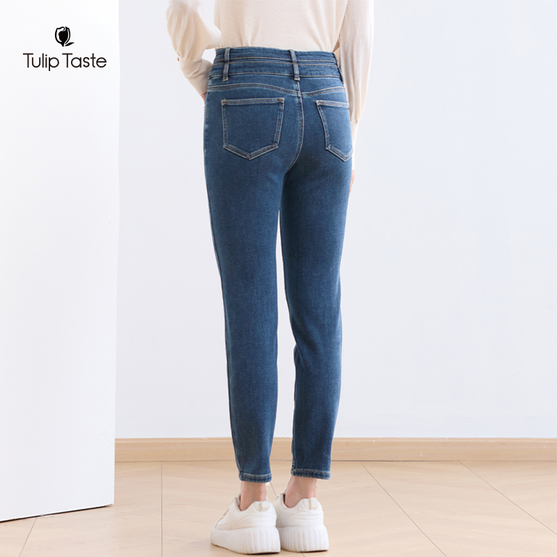 郁香菲小脚牛仔裤女气质通勤秋冬时尚双扣高腰长裤显瘦修身裤子