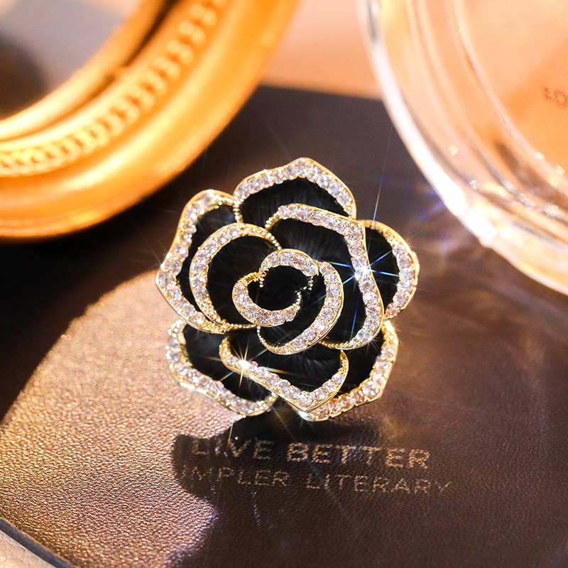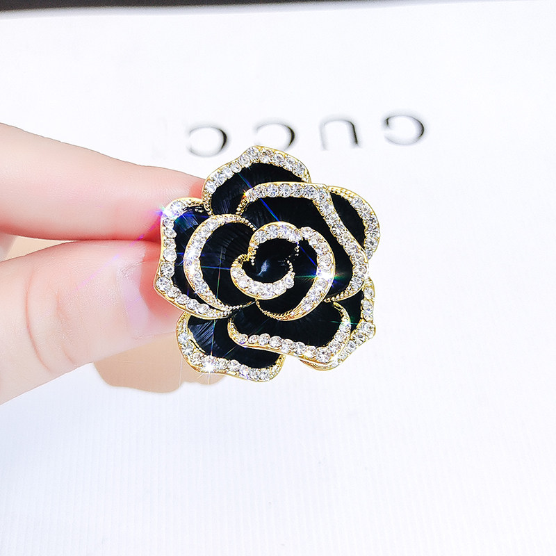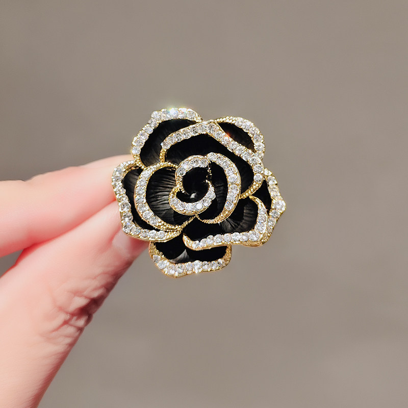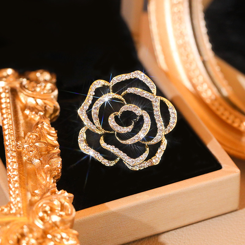 小香风山茶花胸针高档女精致胸花奢华气质配饰品衣服西装毛衣别针