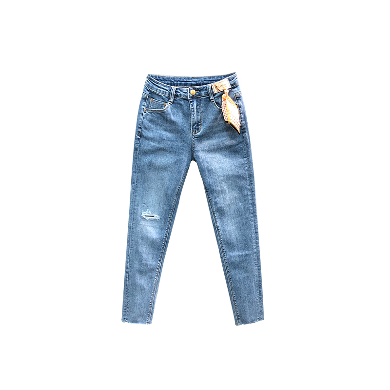 高腰破洞小脚牛仔裤女九分2025年新款秋季时尚修身显瘦弹力铅笔裤