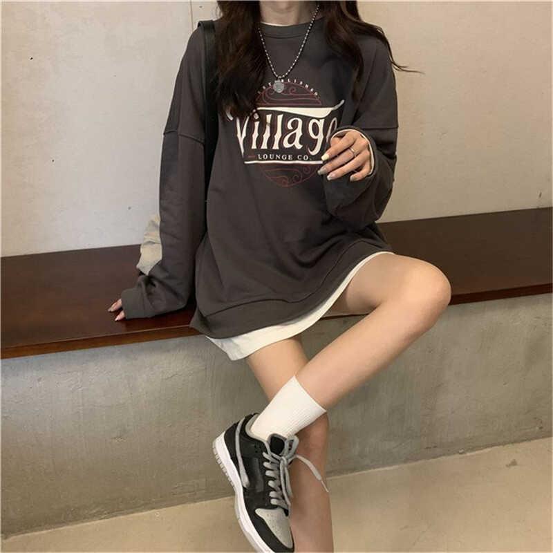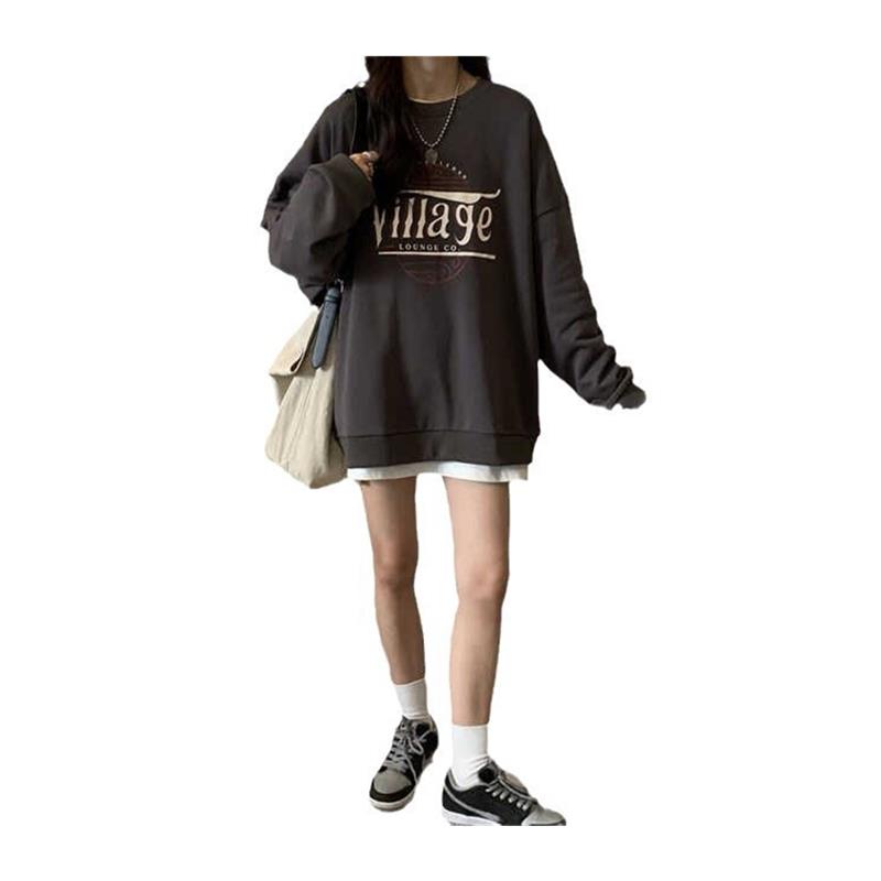 时尚洋气休闲慵懒风圆领长袖卫衣女秋季新款宽松百搭学生外套上衣