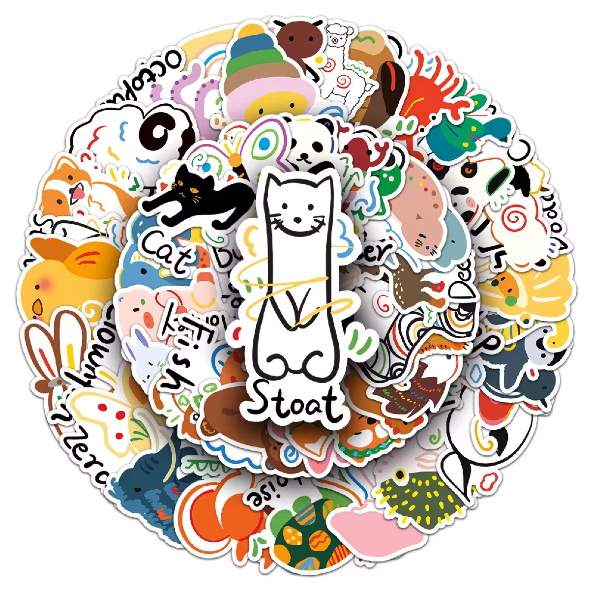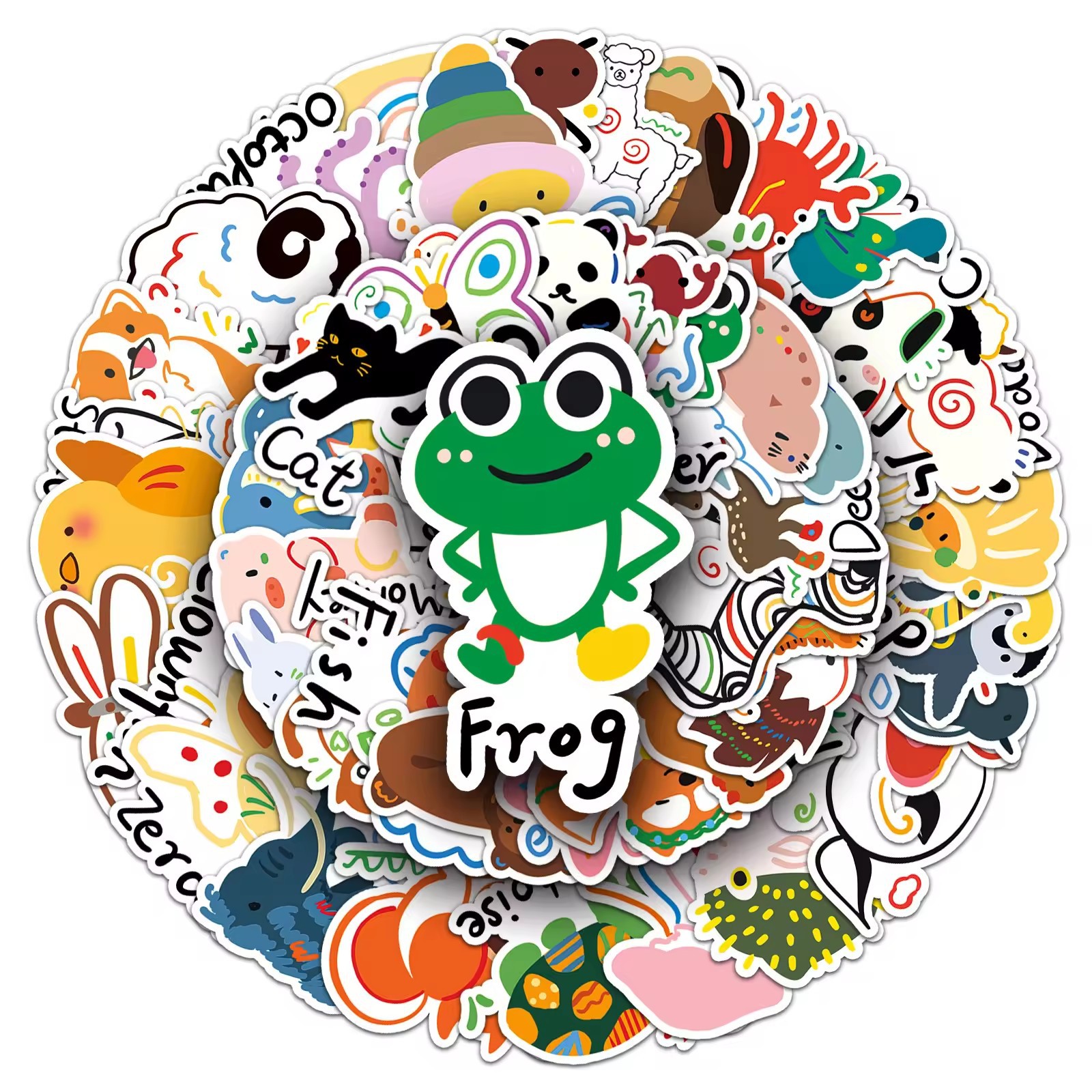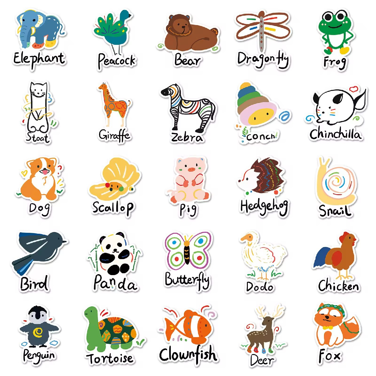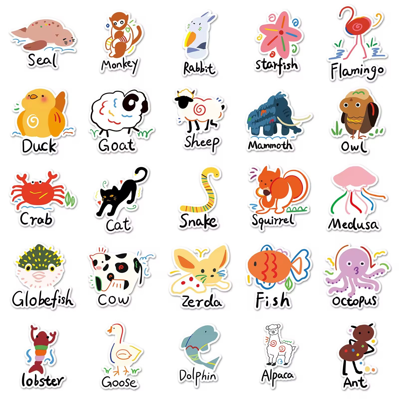 50张卡通可爱动物英语贴纸儿童早教启蒙益智创意学习简约贴画ins风彩绘趣味涂鸦笔记本电脑纸书装饰贴纸标签