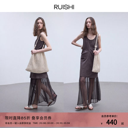 RUISHI芮时 干丝真丝u领背心裙休闲百搭无袖连衣裙女夏季
