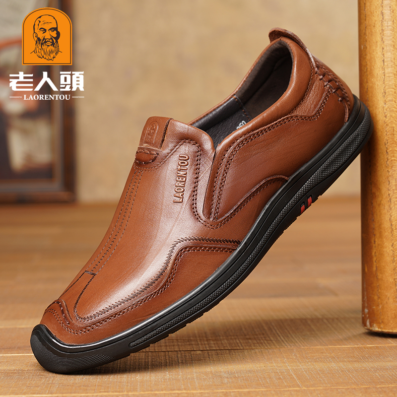 老人头休闲男鞋真皮新款秋季韩版潮流软底豆豆皮鞋男透气乐福鞋男