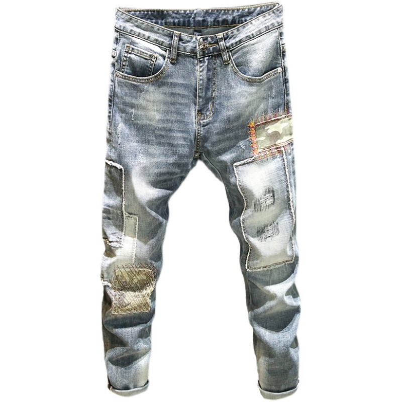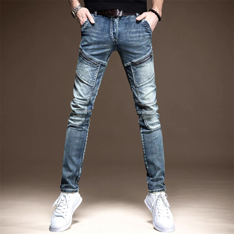 2025春秋季新款高端弹力牛仔裤男士修身小脚休闲复古个性长裤子潮