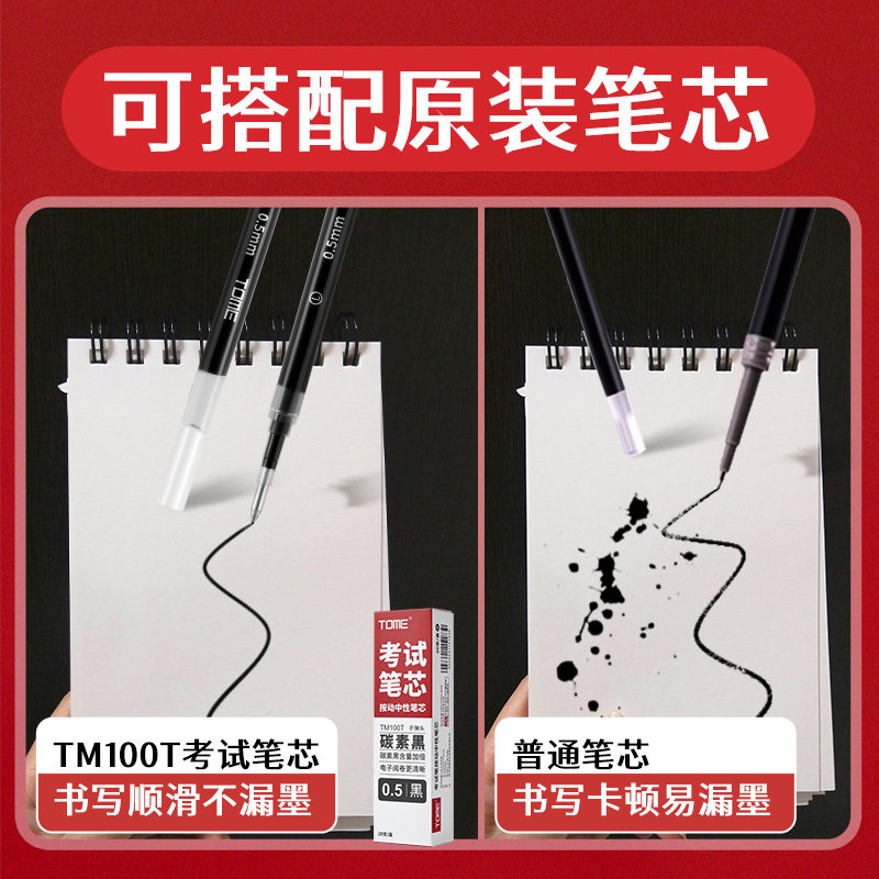 tome考试笔按动中性笔0.5碳素黑学生高考中考专用笔TM100学生刷题笔子弹头顺滑水性签字笔考研考公事业编
