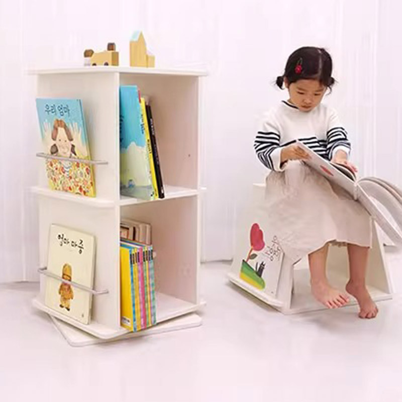 ins北欧风 实木 儿童 学生 旋转 书报架 书架 书柜 绘本架 环保