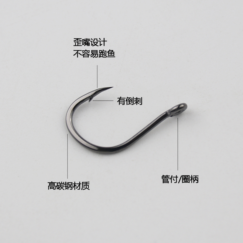 管付伊势尼鱼钩有倒刺歪嘴散装带圈带孔鱼钩海钓钩鲫鱼鲤鱼青鱼钩