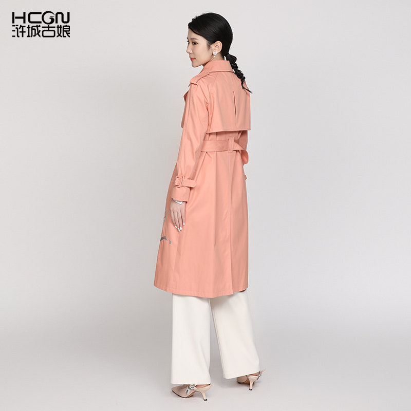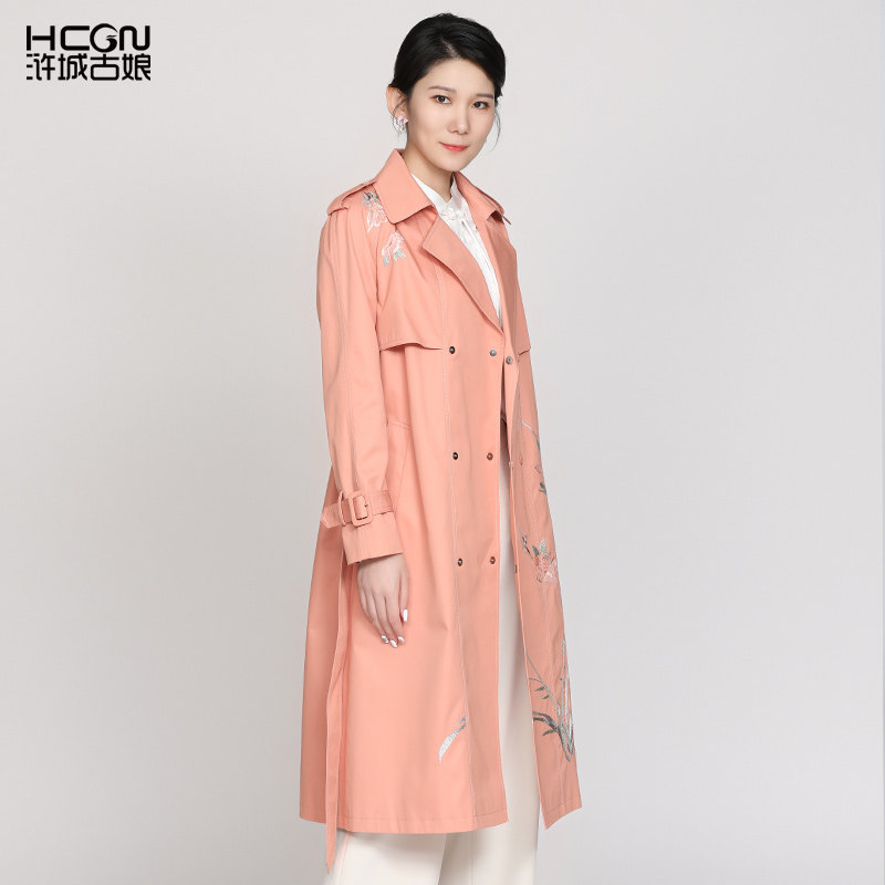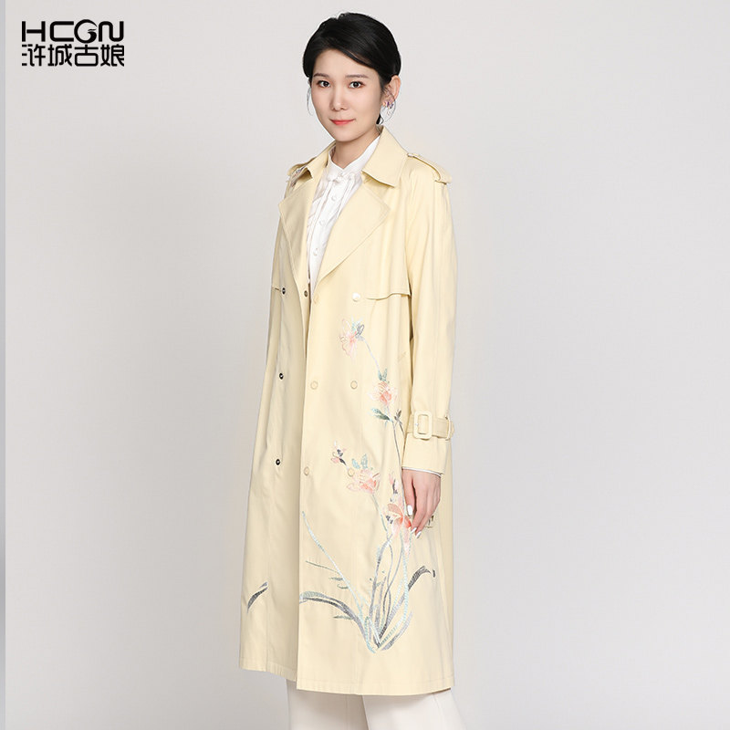浒城古娘新款重工刺绣纯棉气质中长款长袖中式国风风衣外套女春秋