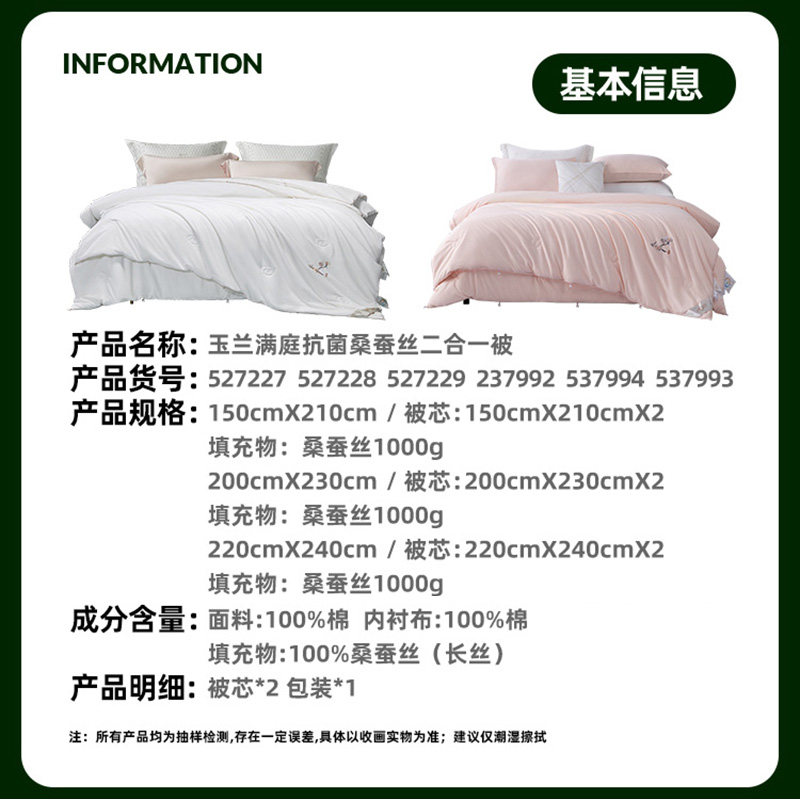 臻选水星家纺100%桑蚕丝被春秋抗菌冬被子母被蚕丝被被子被芯床品