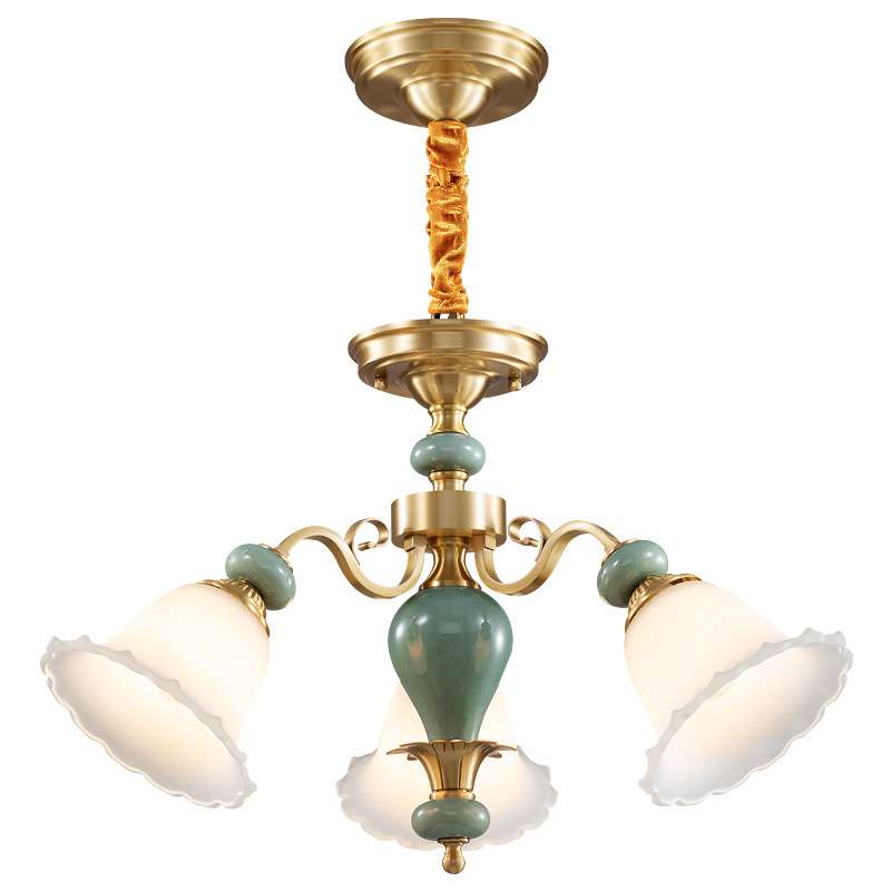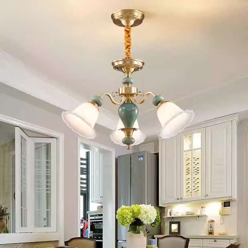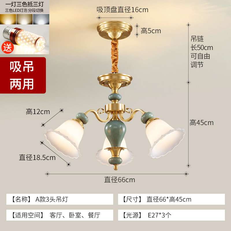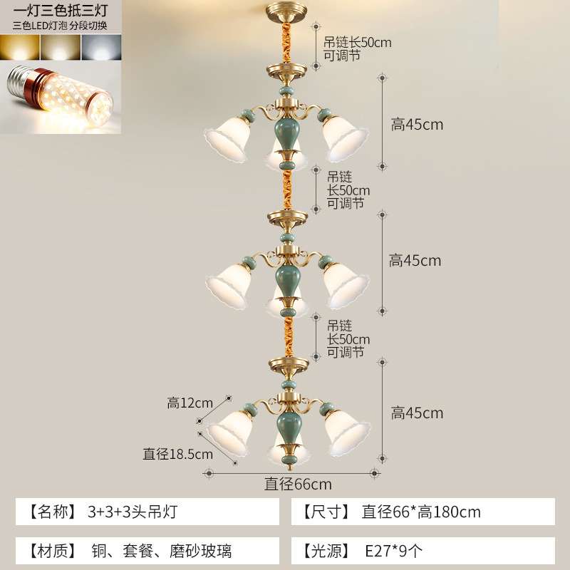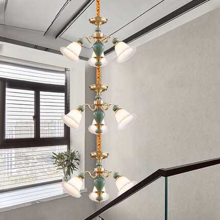 美式全铜陶瓷吊灯欧式法式简约复古餐厅灯卧室灯三层楼梯灯 Y331