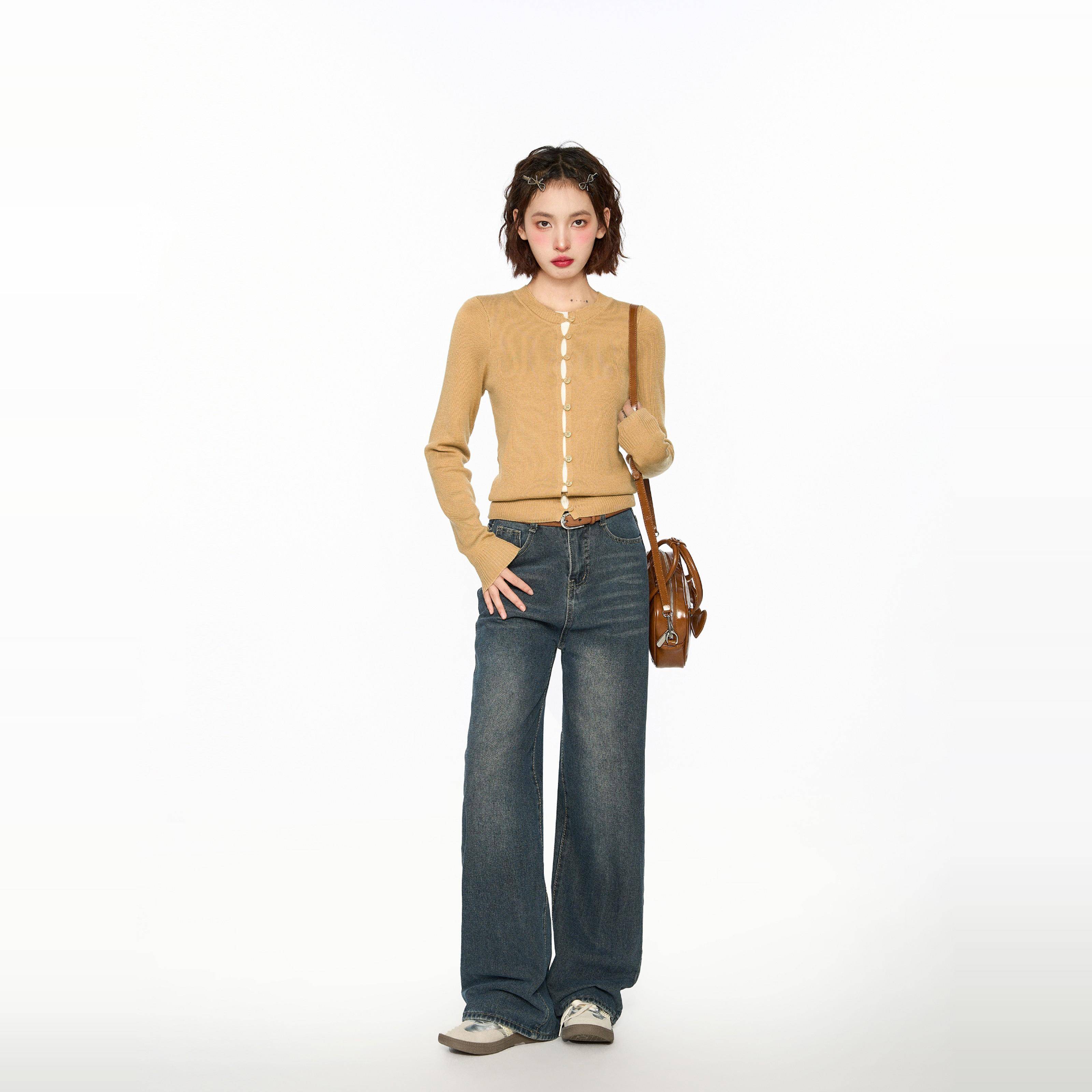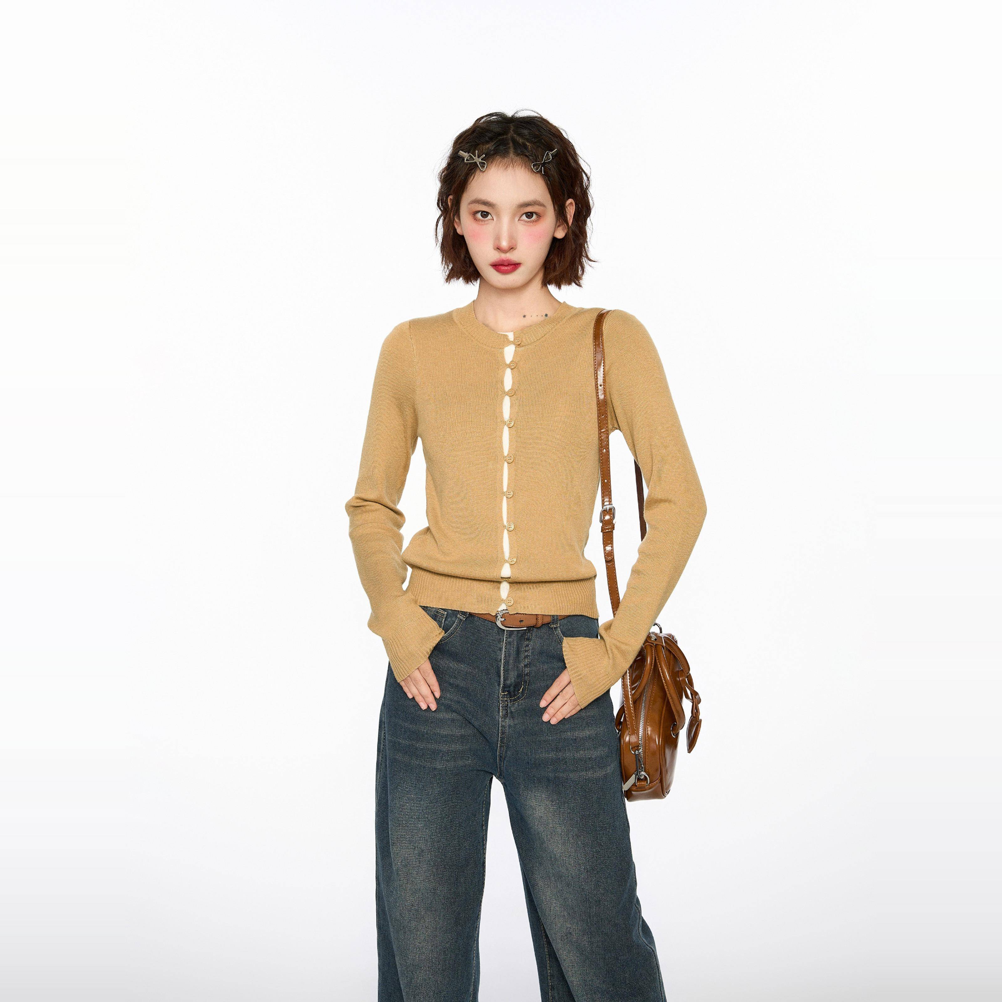 红色假两件长袖毛衣针织衫女早秋秋季修身短款内搭打底衫开衫上衣