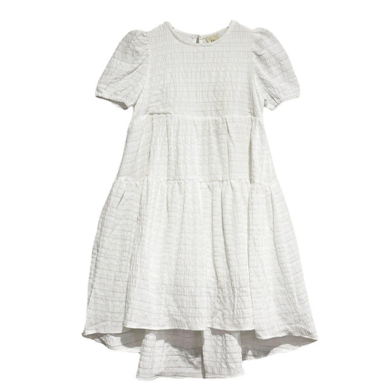 夏装新款母女装亲子装女童海边度假连衣裙白色宽松文艺前短后长裙