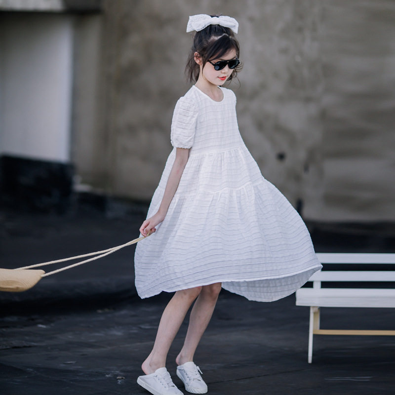 女童海边度假连衣裙白色宽松长裙