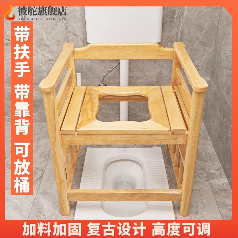 实木蹲坑改移动马桶家用厕所坐便器扶手坐便椅可带桶老人残疾