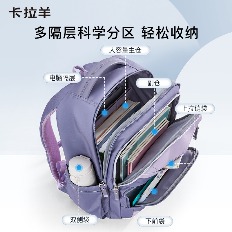 新款卡拉羊书包中学生男轻便减负双肩包小学生背包女大容量电脑包