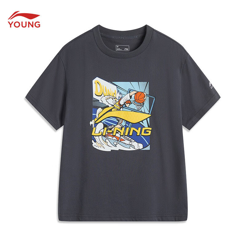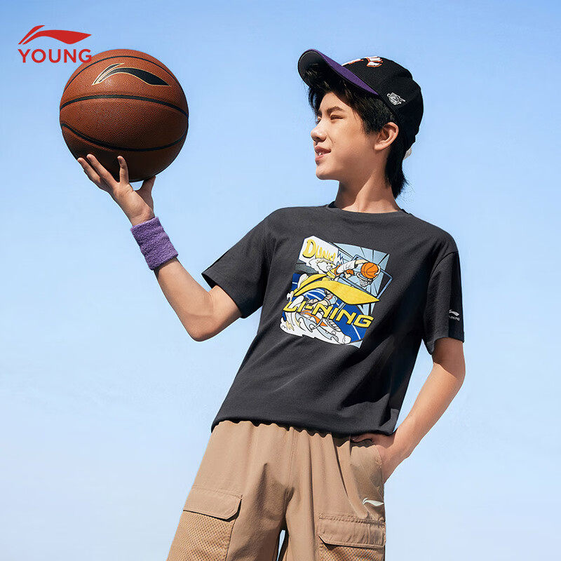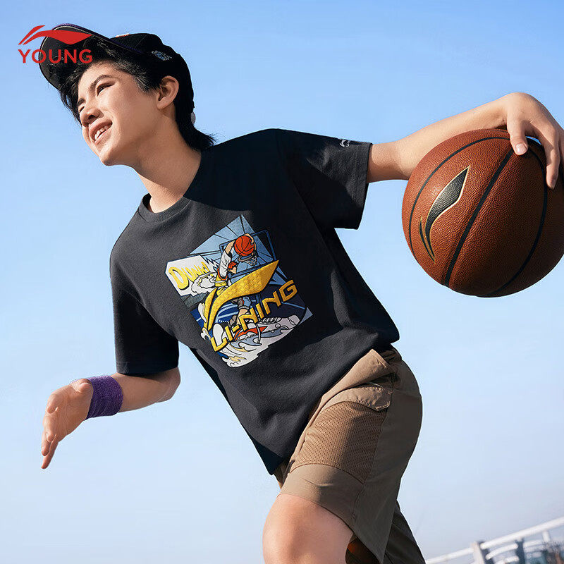 李宁儿童T恤短袖男大童2025夏季新款男童宽松速干半袖青少年上衣