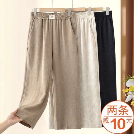 中老年女裤九分阔腿裤宽松休闲裤夏季薄款新款中年妈妈直筒冰丝裤