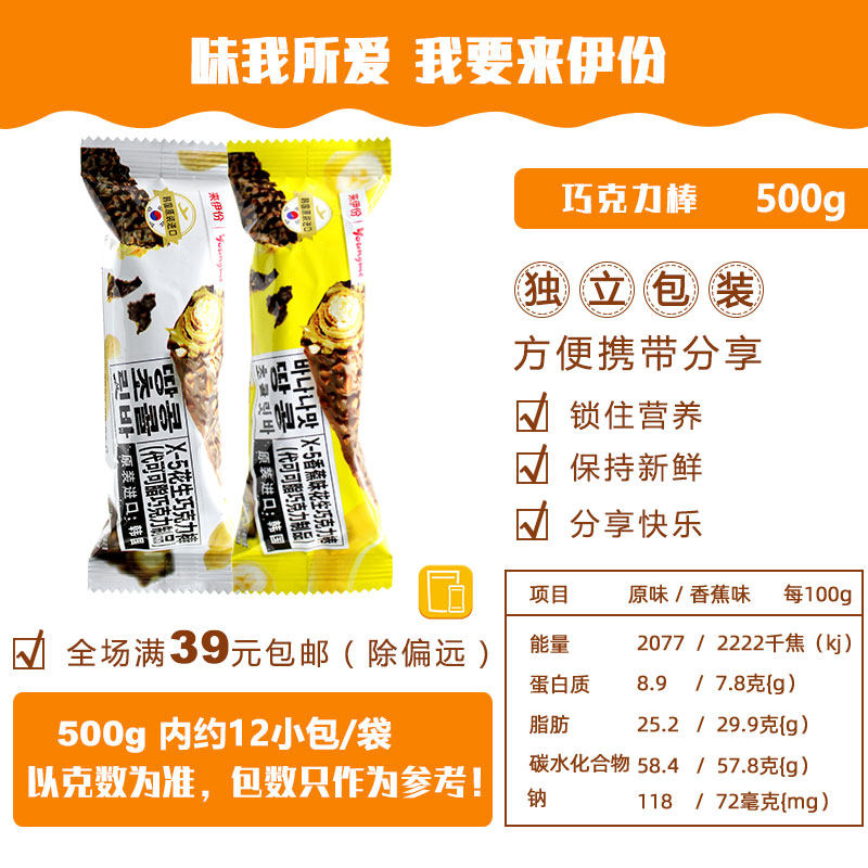 来伊份X-5花生巧克力棒500g韩国进口夹心美味抗饿酥脆休闲小零食